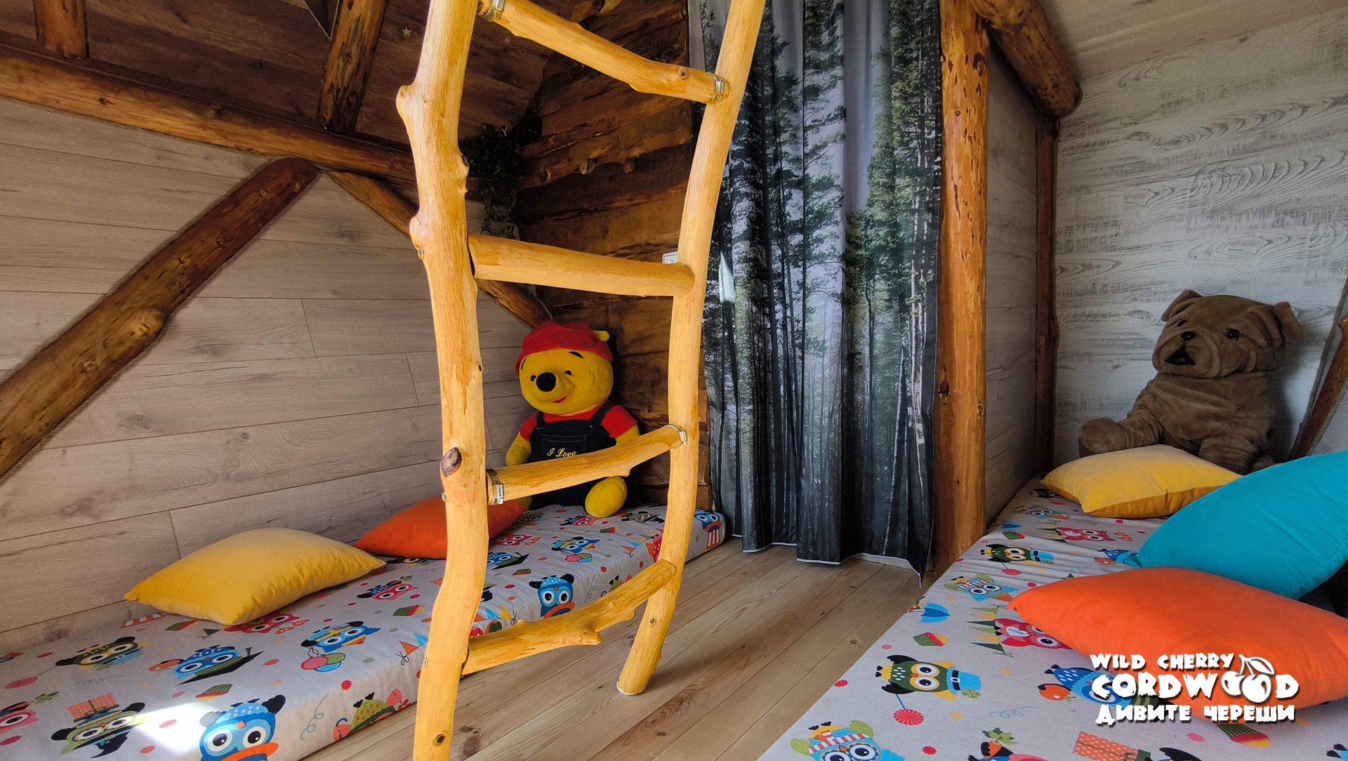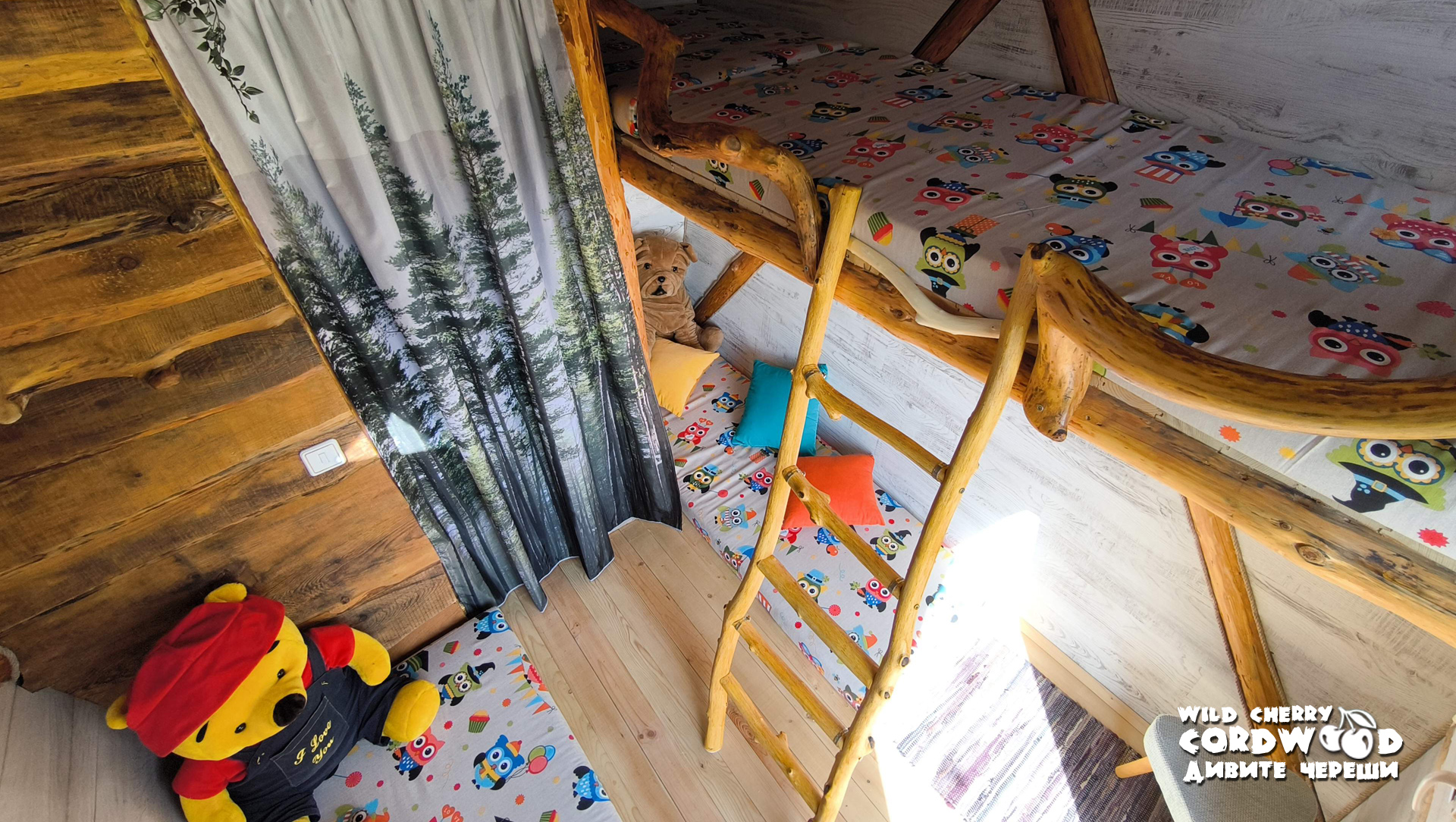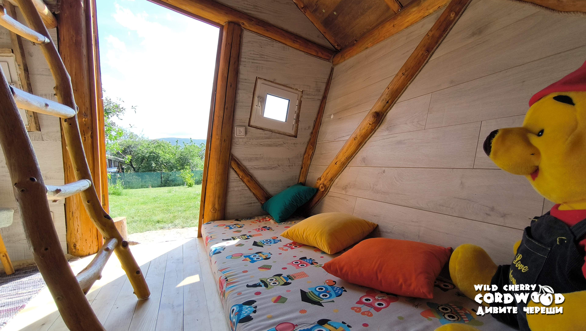 Кривата къщичка е част от детската зона на къща за гости „Дивите череши“, където всяко дете открива своя малък, вълшебен свят – с люлки, пързалка, батут и безкрайни възможности за игра.